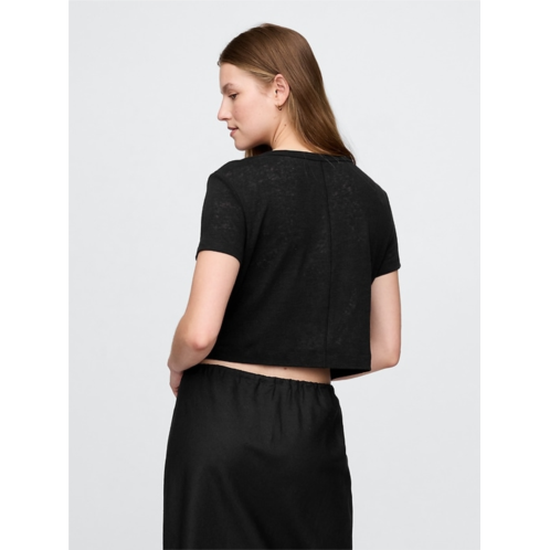 - Soft linen-blend cropped T-shirt.