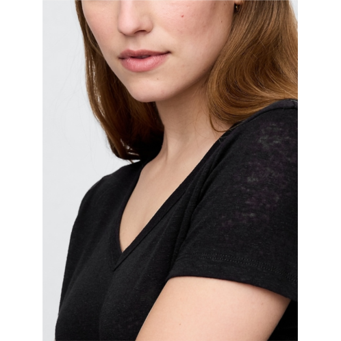 [US] Gap Linen-Blend V-Neck Crop T-Shirt