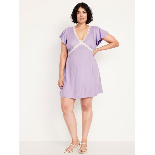 [US] OldNavy Fit & Flare Crepe Lace-Trim Mini Dress