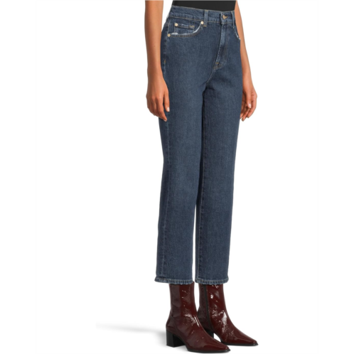 Slay a modern and sleek look by wearing 7 For All Mankind Logan Stovepipe Jeans that feature a straight leg with cropped silhouette. The jeans features a high-rise waistband with belt loops, zip-fly & button closure, five-pocket styling, and signature branding on the back waist.