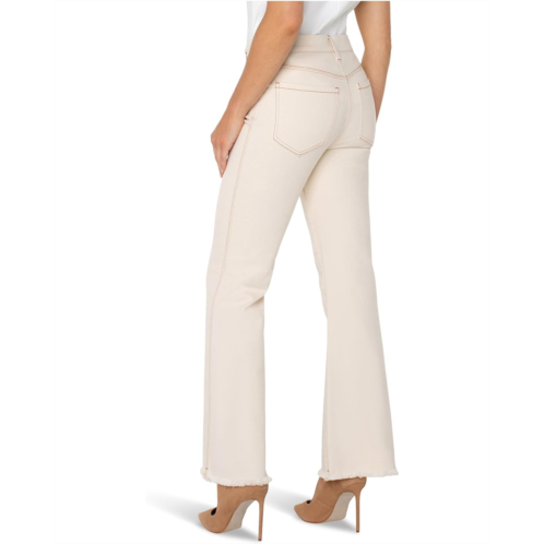 Introducing the updated Liverpool Los Angeles Gia Glider Pull-on Flare With Forward Side Seam now with a trendy flare and frayed hem. The gentle flare and forward side seam detailing creates a sleek, elongated silhouette, perfect for every occasion. It features belt loop waistband, zip-fly, button closure, and five pockets style.