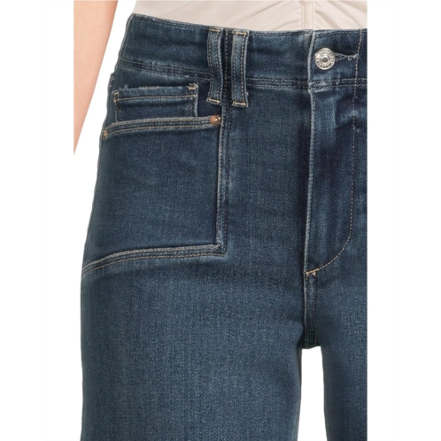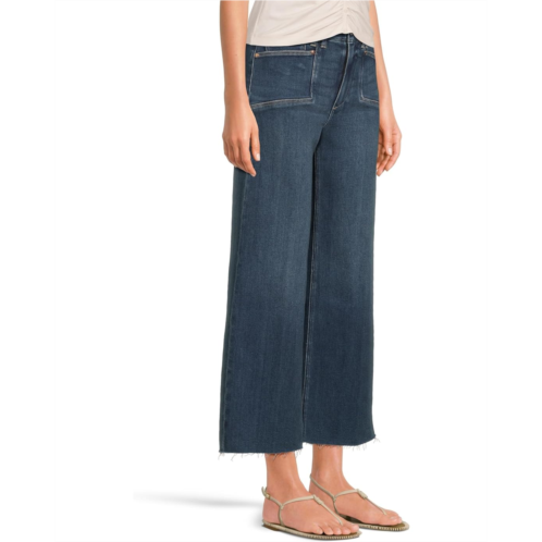 The Paige Anessa Set In Pockets Raw Hem In Amoroso jeans are modern high-rise wide-leg jeans with a relaxed fit and an ankle-length silhouette. These denim jeans are crafted from the brand's customer-favorite PAIGE VINTAGE denim in a classic dark wash with set-in pockets and a raw hem. They are created by combining the comfort of stretch with everything you love about authentic vintage denim that feels perfectly lived-in from the very first wear. Designed with a high-rise waist, these wide-leg jeans are finished off with a zip-fly, buttoned closure, and belt loops.
