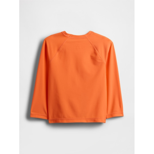 - This swim rash guard is made with 82% recycled polyester. Compared to virgin materials, using recycled materials helps to reduce resource use and waste.