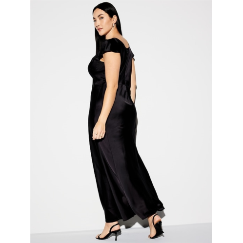 - body-skimming satin is cut on the bias for a perfect fit