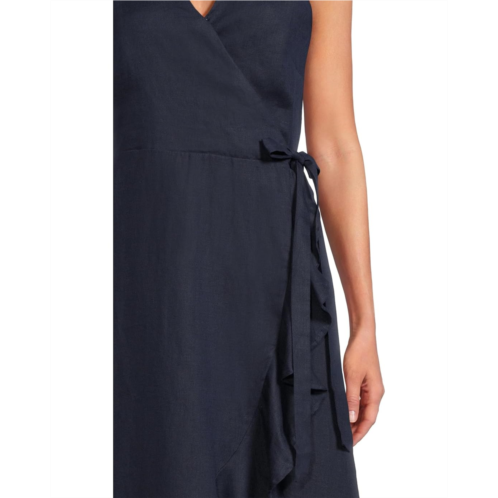 The Tommy Bahama Coastalina Sleeveless Wrap Midi Dress is a sleeveless solid linen wrap dress crafted from soft, washable linen and featuring a flounce high/low hemline and adjustable tied waist. Lined for added comfort, this midi dress is styled with a flattering V-neckline. Stylish and comfortable, this midi dress works for different occasions.