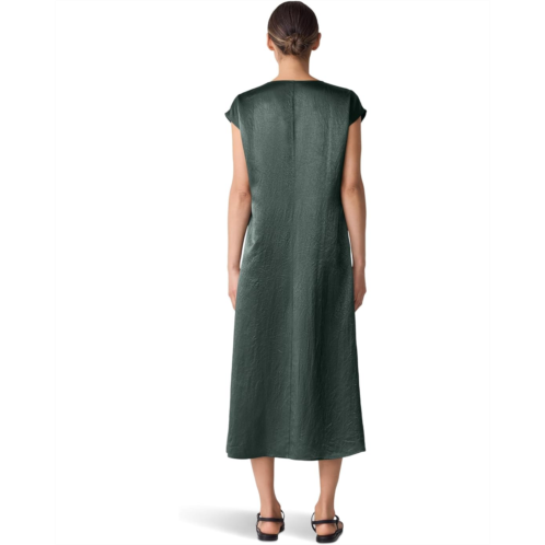 [US] Eileen Fisher Textured Satin V-neck Dress
