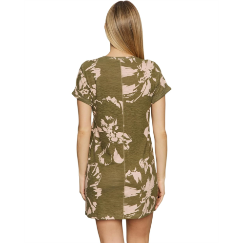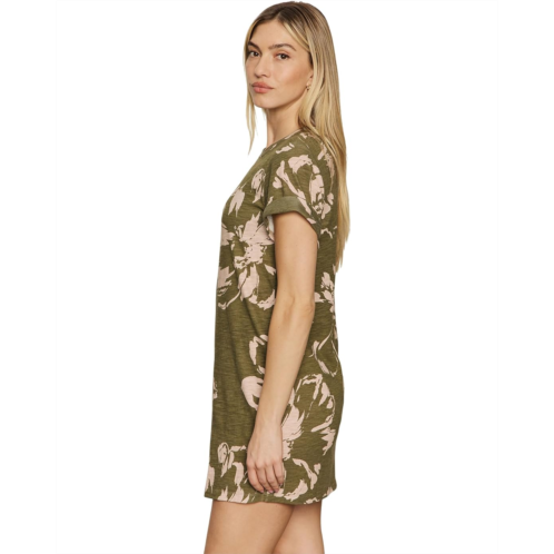 Dress fashionable wearing the Sanctuary Perfect Tee Remix Dress. This dress features crew neckline, short cuffed sleeves, relaxed fit, back seam details, allover graphic print, and self tie belt at the waist.