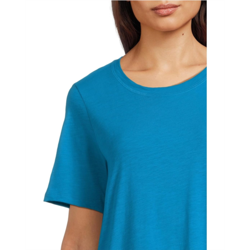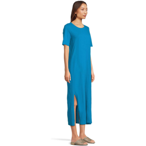 Soft and light, an organic cotton jersey with the visual texture that comes from a very fine slub yarn. Now grown using regenerative farming methods that support soil health and biodiversity. The EILEEN FISHER Crew Neck Dress offers a crew neckline with short sleeves and side slits in a pull-on style. A perfect match to your casual style.