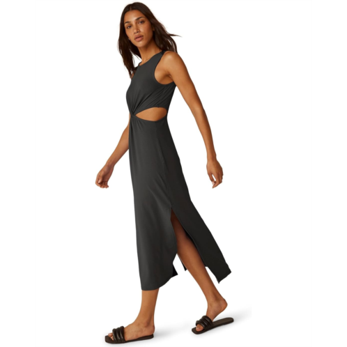 Jet-set style, everyday ease: Beyond Yoga Around The World Front Twist Dress. Discover a scoop neckline, sleeveless tank design, and flattering front twist detail for a chic silhouette. Enjoy the comfort of side slits, relaxed fit, and midi length-perfect for any occasion. Whether globetrotting or lounging, this sueded, bouncy, stretchy dress is a must-pack item that effortlessly blends style and comfort.'