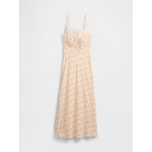[US] Gap Crepe Lace-Trim Sweetheart Maxi Dress