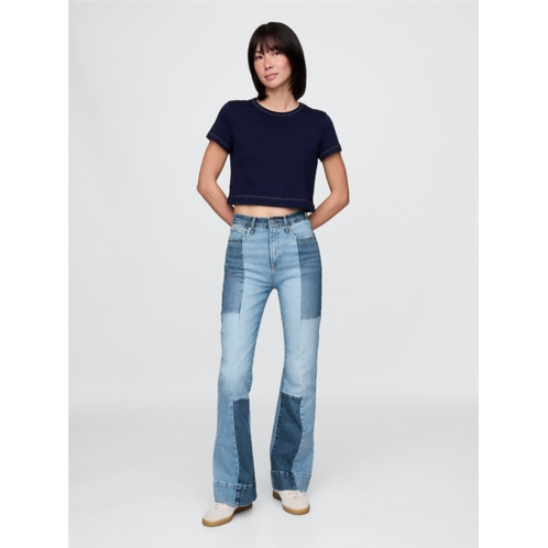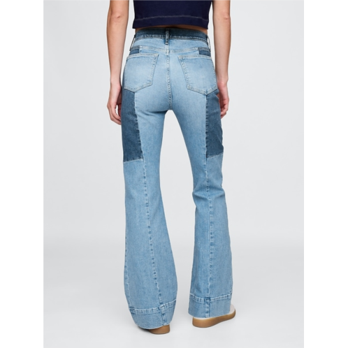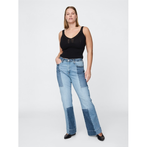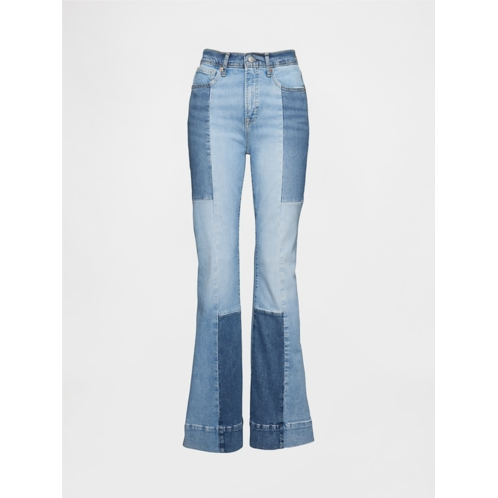 - Look: A classic five-pocket jean in a patchwork denim wash.