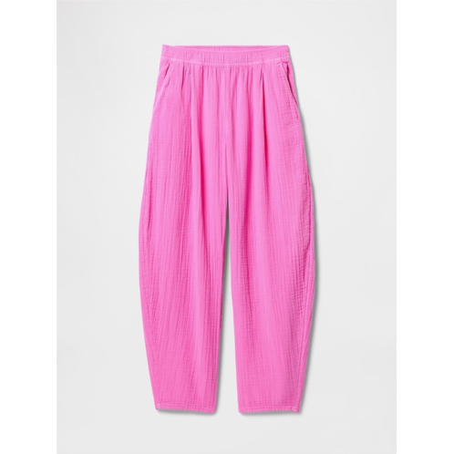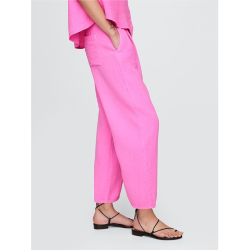 - Soft cotton gauze easy barrel pants.