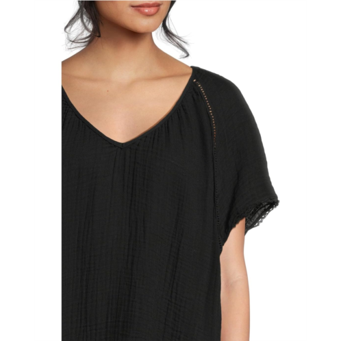 Add a touch of elegance to your basic, everyday style wearing Michael Stars Sky Mini Dress. The pull-on style dress features a scoop neckline, drop shoulders, flutter sleeves, and pockets on the side for added functionality. The relaxed-fit flowy dress comes in a gauze fabric and is intended to hit above the knees.