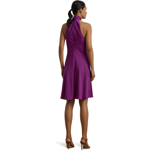 Spark conversations and glow with every step styling the Lauren Ralph Lauren Charmeuse Halter Cocktail Dress is your go-to for cocktail soirees and unforgettable nights out. Designed in a dreamy featherweight charmeuse, this luxe stunner shines with a luminous sheen and drapes effortlessly for an airy, elegant feel. The A-line silhouette flatters every figure, falling just above the knee for that chic, flirt-worthy finish. A twist-front halter neckline and delicate keyhole detail bring in a touch of allure, while the sleeveless design keeps things fresh and fabulous. Fully lined for seamless comfort, and finished with a concealed zipper closure at the center of the back and hook-and-eye closure for a sleek silhouette.