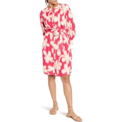 The NIC+ZOE Glowing Flower Blouse Dress offers the perfect blend of breezy elegance, everyday ease, and a colorful allover floral print that brings fun-in-the-sun vibes. Crafted from textured linen with a soft drape, this woven dress features delicate shirring and feminine details that elevate its effortless silhouette. Designed with a relaxed A-line fit, a button front, and a self-belt to define the waist, it's a versatile piece that moves with you. The elbow-length sleeves and a round neckline make it ideal for warm-weather dressing, while the two side-seam pockets add a practical touch. Whether worn cinched or loose (or even open as a bathing suit cover), this blouse dress is an instant go-to for effortless style.