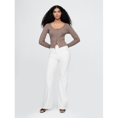 -Fit:Snug & flattering through the hip & thigh with a flared leg.