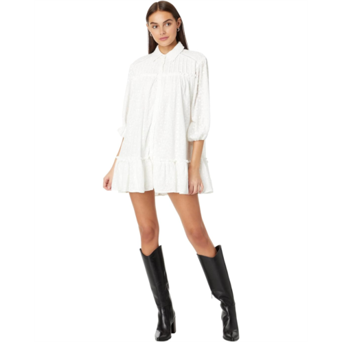 Stylish and chic, the line and dot Angelica Mini Dress is the perfect addition to your closet, making you stand out from your everyday casual look. The dress has a collared neckline, elbow sleeves, button closure, and flared hemline with a frill silhouette for a classy touch. The intricate detailing allover elevates the look effortlessly.