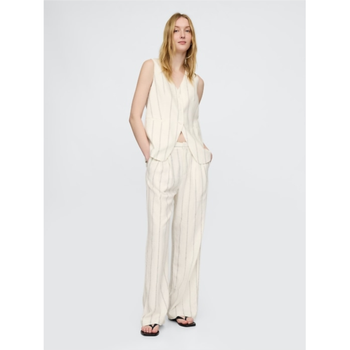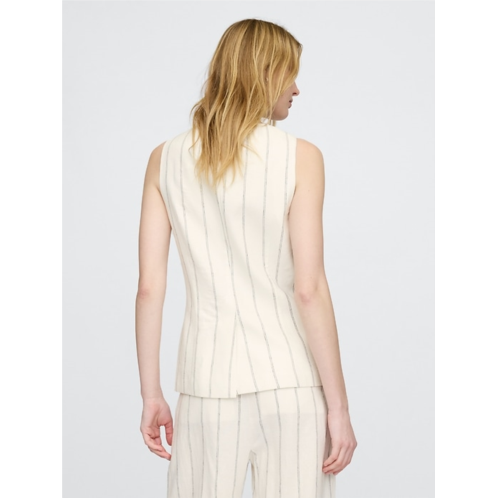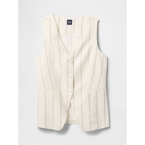 - Soft, heavyweight linen-blend longline vest with a soft cotton lawn lining.