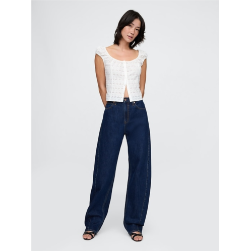 [US] Gap Cap-Sleeve Eyelet Top