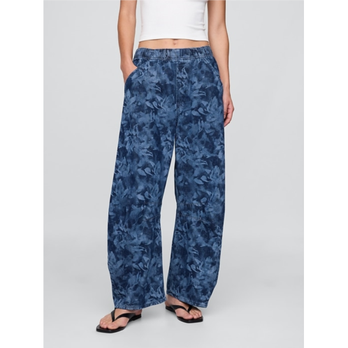 -Look:An easy horseshoe jean in a navy blue floral wash.