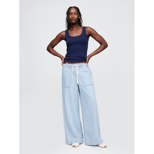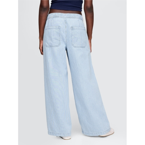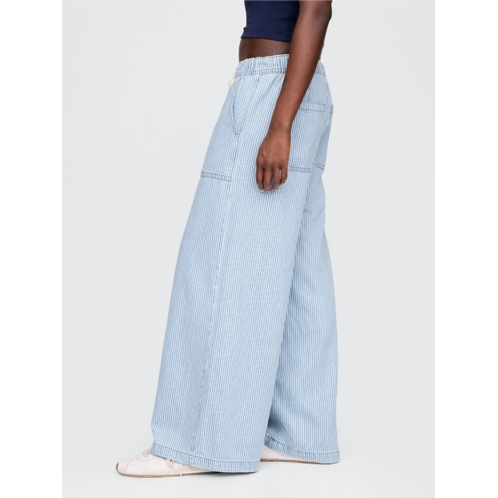 -Look:A pull-on baggy jean in a light indigo railroad stripe.