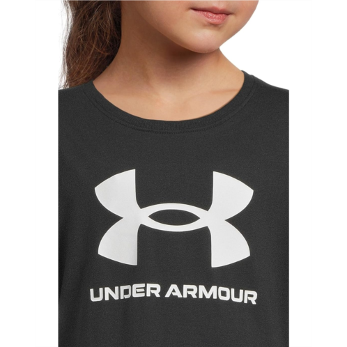 Let them move, play, and shine in the Under Armour Kids Big Logo Short Sleeve T-shirt. Featuring Under Armour's iconic logo front and back, this T-shirt is built with lightweight, breathable fabric that keeps up with every sprint, jump, and tumble. It has a ribbed crew neckline, short sleeves, and a straight hem.