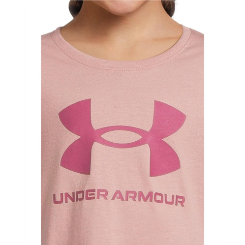 Let them move, play, and shine in the Under Armour Kids Big Logo Short Sleeve T-shirt. Featuring Under Armour's iconic logo front and back, this T-shirt is built with lightweight, breathable fabric that keeps up with every sprint, jump, and tumble. It has a ribbed crew neckline, short sleeves, and a straight hem.