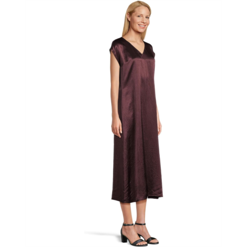 [US] Eileen Fisher Textured Satin V-neck Dress