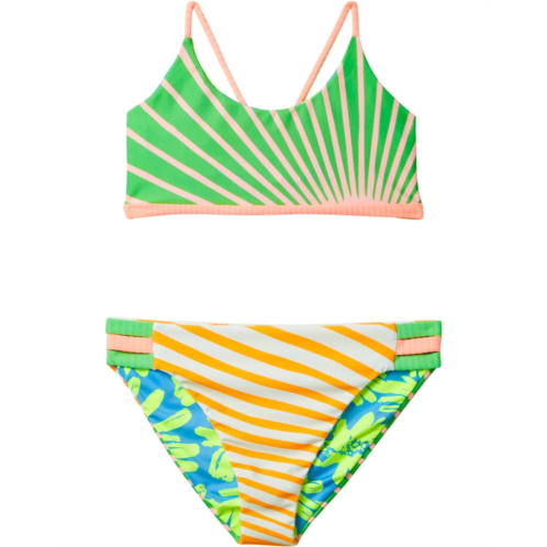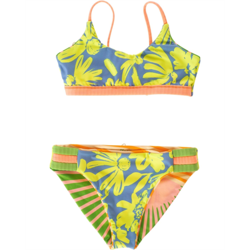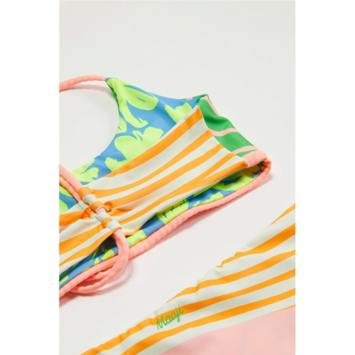 The Maaji Kids Flowers Girls Swimwear is a cute bikini set that elevates style and offers unmatchable comfort. The bikini top features sleek shoulder straps with a tie-up back detail. The matching pull-on style bottoms feature a regular-cut silhouette. You can turn it inside, flip it front or backward for 4 looks!
