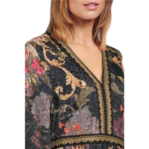 A romantic floral midi with embroidered details and a timeless boho silhouette. Featuring a V-neckline with three-quarter sleeves and a pull-on style.