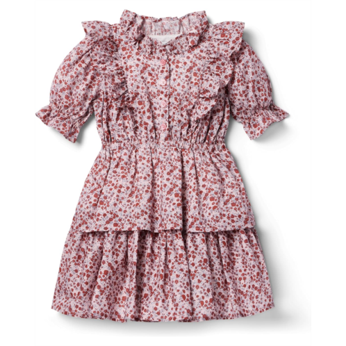 Bloom in elegance with every twirl! This Janie and Jack Tiered Dress captures charm in rich floral hues, perfect for every occasion. With a fully lined design, crew neck, and button-back closure, it's as comfy as it is charming. The long sleeves with elasticized ruffled cuffs add a touch of whimsy, while the above-the-knee length keeps it playful. A tiered skirt with frill details and an included bloomer complete this look, making it effortlessly stylish and oh-so-easy to wear.