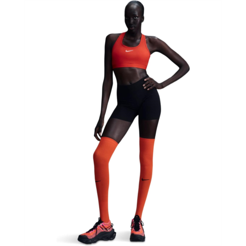 - You're on the move. Your padding shouldn't be. The Nike Swoosh Medium Support Bra 's sewn-in pads stay in place so you can work hard without worrying about them shifting or folding. Great for training workouts and dance classes, this medium support bra gives you a snug hold that helps keep everything in place. Plus, sweat-wicking, adaptive material quickly recovers its shape so you can stay comfortable throughout your workout.