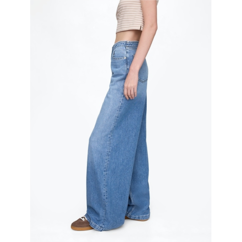 Look:A five-pocket baggy jean in a medium indigo wash.