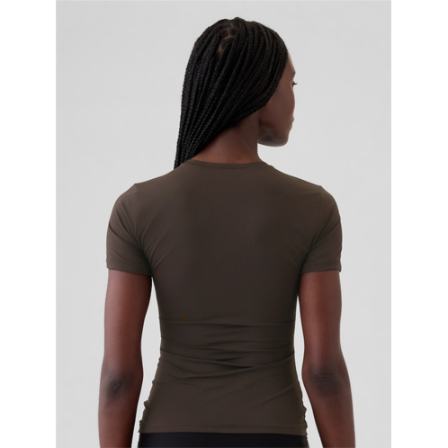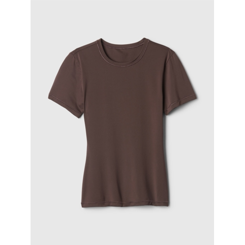 - Soft, ultra-stretchy nylon-blend T-shirt.