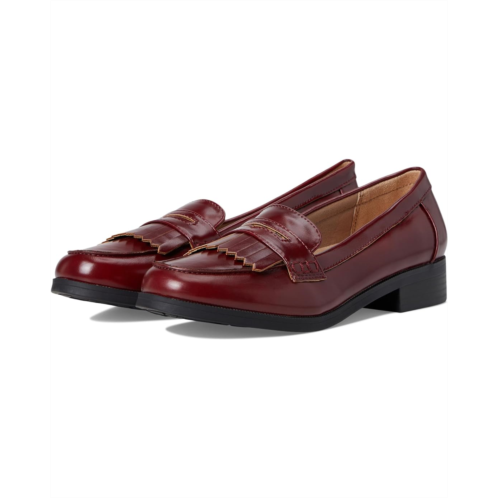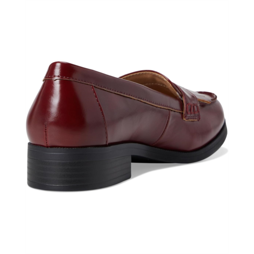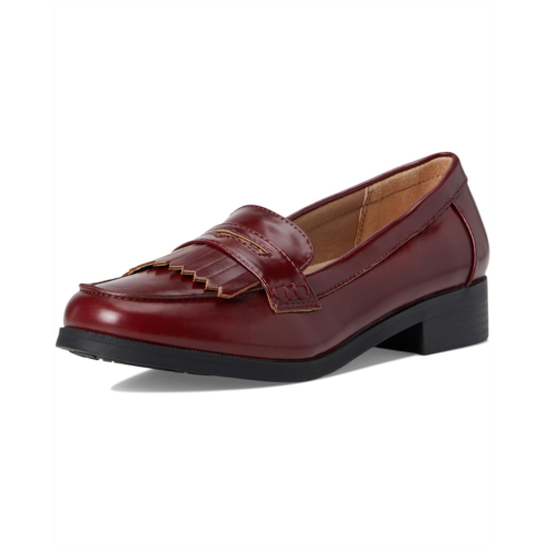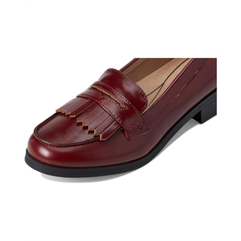 Get in on the tailored trend in this polished womens loafer with menswear-inspired details. Faux leather with round toe, slip-on fit, and penny strap accent with kiltie fringe detail.