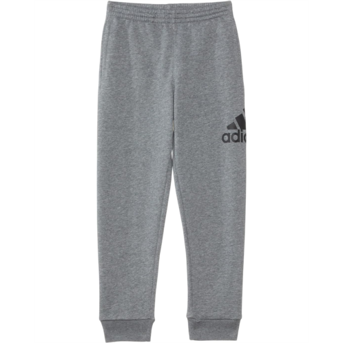 His new favorite pair of go-to joggers. These adidas Kids Essential Heather Joggers are made of soft, warm fleece, so he'll be comfortable. An adidas Badge of Sport keeps things rooted in sport. The regular fit joggers are designed with a mid-rise style and an elasticized waistband.