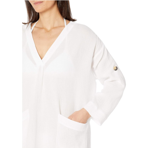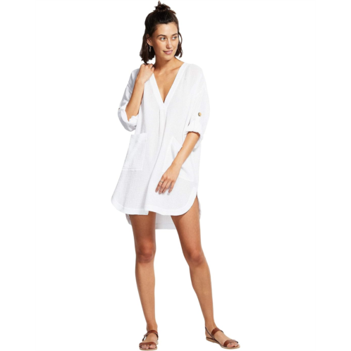 - The Seafolly Aloha Essential Cover-Up features soft double cloth cotton, roll and tab sleeves, and deep V neckline.
