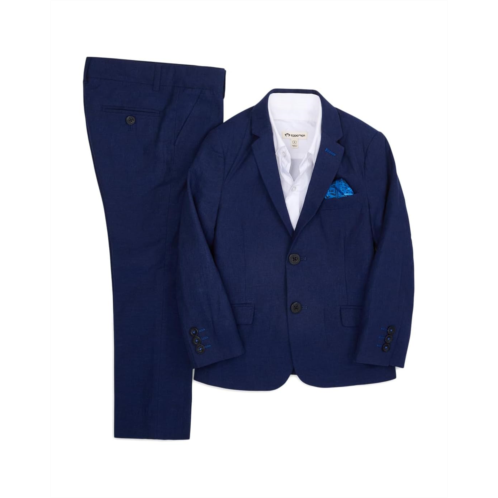 Let your little kid look as sharp as his smile wearing the Appaman Kids Two-Piece Stretchy Mod Suit. This tailored fit, slim, European cut two-piece set includes a top and a bottom. Featuring classic notch lapel collar neckline, long sleeves with button detailing on the cuffs, one patch pocket on the upper left chest, two flap patch pockets on the front, and double-button front closure. Bottoms with belt loop waistband, a zip-fly and button closure, two hand pockets, and button closure welt pocket on the back.