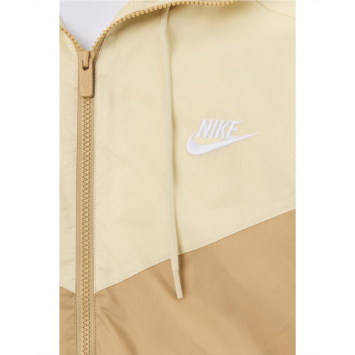 Stay ahead of the wind styling the Nike Woven Wind Resistant Hooded Jacket. Crafted with lightweight, recycled fabric, this jacket offers a relaxed, easy fit that's perfect for any adventure. Featuring long sleeves, an attached hoodie, and slit pockets for easy storage, this jacket is built to keep you comfortable and protected. The zippered front closure ensures a snug, customizable fit, while grommets made with Nike Grind rubber add a sustainable touch. With the classic Nike Windrunner look and design details pulled from the original windbreaker, this jacket gives you iconic style and performance.