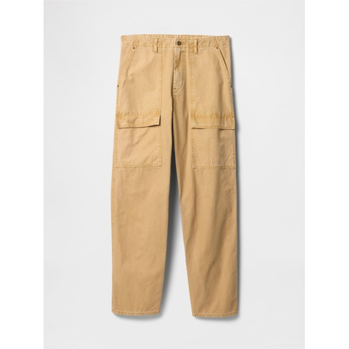 - Smooth, overdyed cotton canvas baggy utility pants.