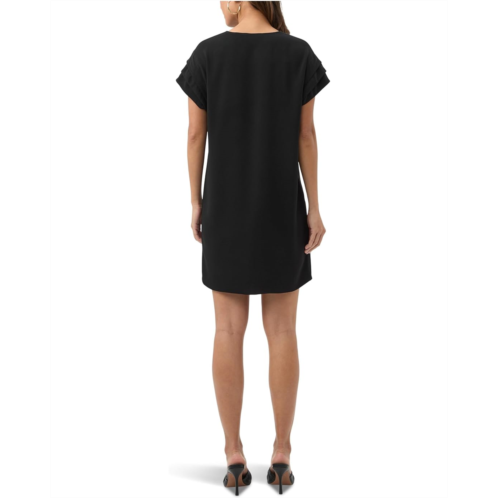The Trina Turk Sadora Dress is an easy V-neck, T-shirt body with tucking detail on the sleeves, making it perfect to dress up or down. This sensuous dress is sure to turn heads. It features short sleeves, short length, above the knee length style, and pull-on construction.