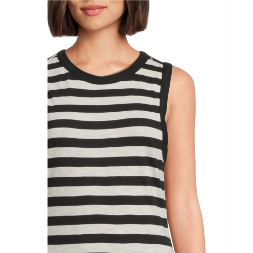 Experience the fusion of fashion and functionality in every step wearing Sanctuary Contrast Trim Maxi! Elevate your style with its trendy crew neck and sleeveless design. Effortlessly slip into the pull-on style for instant glamor. Featuring a left side slit, this maxi offers both flair and comfort, making it perfect for any occasion.