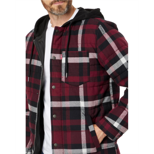 Keep yourself warm and exude a refined style wearing Levi's Cotton Plaid Quilted Puffer Jacket. The classic-fit jacket features an attached hood with drawstring, long sleeves with adjustable tab, center-front zipper & snap-button closure, and allover plaid pattern. The one patch pocket on the left chest and two lower-front pockets allow easy storage.