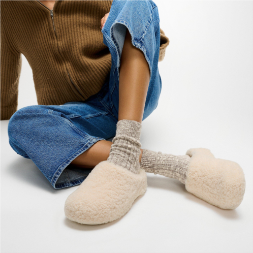 These clogs are as fabulous as they are fluffy. Crafted in ultra-soft curly shearling, inside and out, and finished with a plush faux-fur footbed, they deliver a bold blend of statement style and next-level coziness. They're engineered with our legendary Microwobbleboard midsoles, so you not only look like you're walking on clouds, you feel like it too. Lightweight, cushioned, and irresistibly snug, they're perfect for lounging in luxury. Wear them as slippers or plush clogs around the house with full rubber outsoles so stepping outside is no problem.