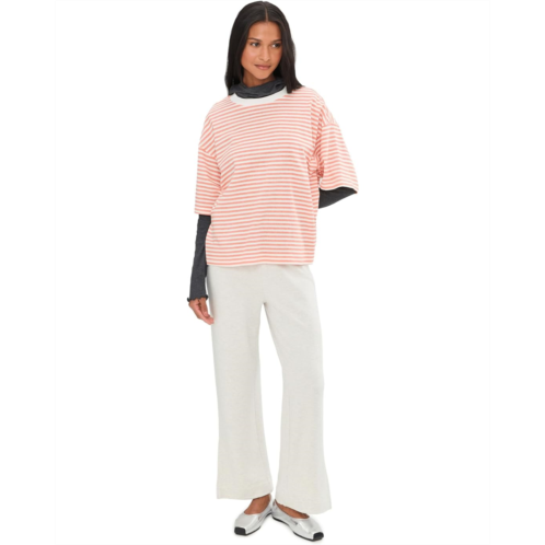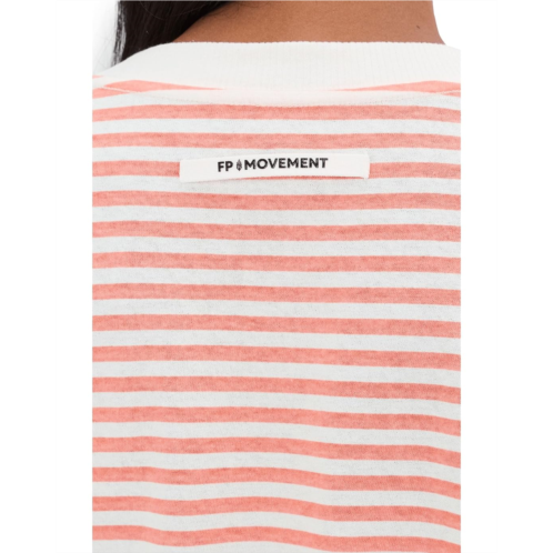 - The FP Movement Stripe Tackle Tee is a relaxed, casual tee with a slightly boxy silhouette. It features a classic all-over stripe pattern and a contrast crew neck, giving it a timeless, easygoing vibe. The elongated, boxy short sleeves and roomy fit make it comfortable for layering or wearing solo.