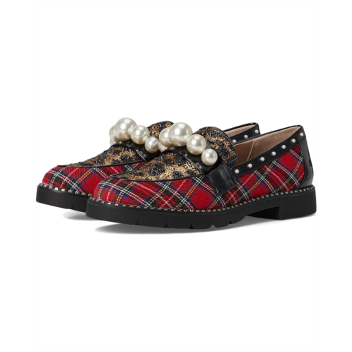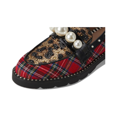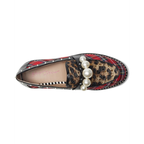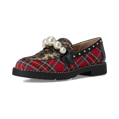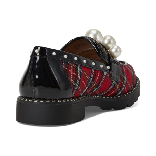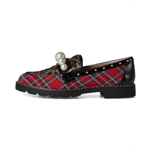 The Blue by Betsey Johnson Harloe loafer is cool girl approved, featuring a fun pearl embellishment on a sequin leather faux upper. The slip-on style loafers come with a polyurethane lining, a rubber insole, and a solid block heel.