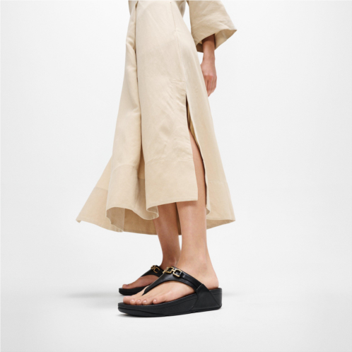 [US] Fitflop Square-Chain Leather Toe-Post Sandals