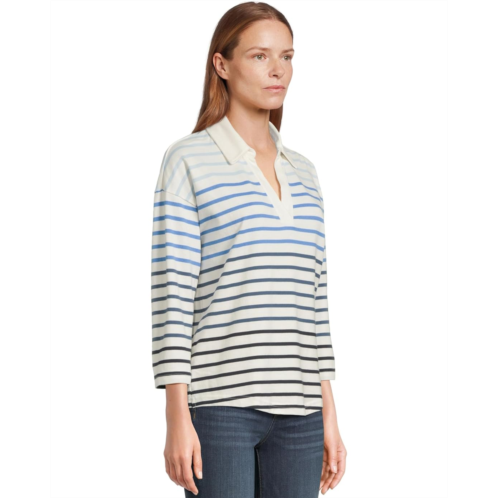 [US] L.L.Bean Womens LLBean Heritage Mariner Top Split-Neck Polo Three-Quarter-Sleeve Stripe