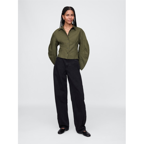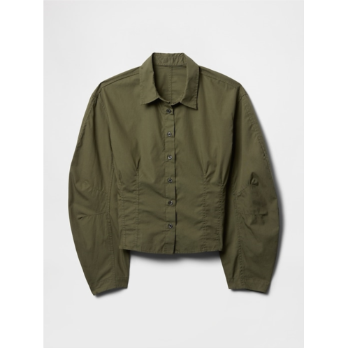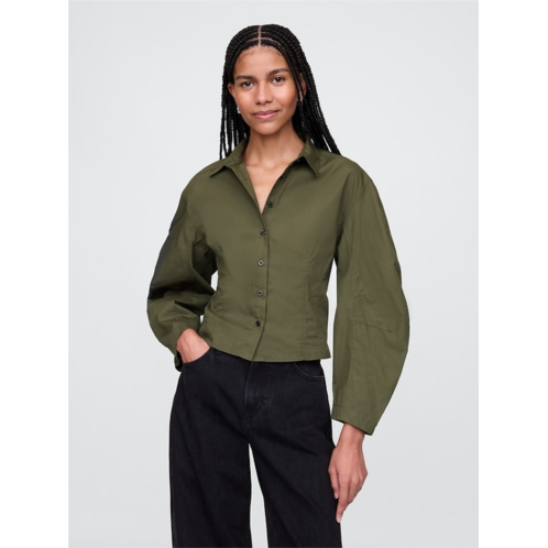 [US] Gap Organic Cotton Poplin Barrel-Sleeve Crop Shirt