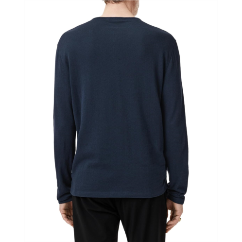 Flaunting attractive blend of textures and unique broken stitch details, the John Varvatos Walden Henley T-shirt that is thoughtfully crafted with super fine pima cotton and finished with signature flag label branding. The tee features a henley crew neckline, half-button placket accentuated with woven detail, long sleeves, and straight hem with side splits.